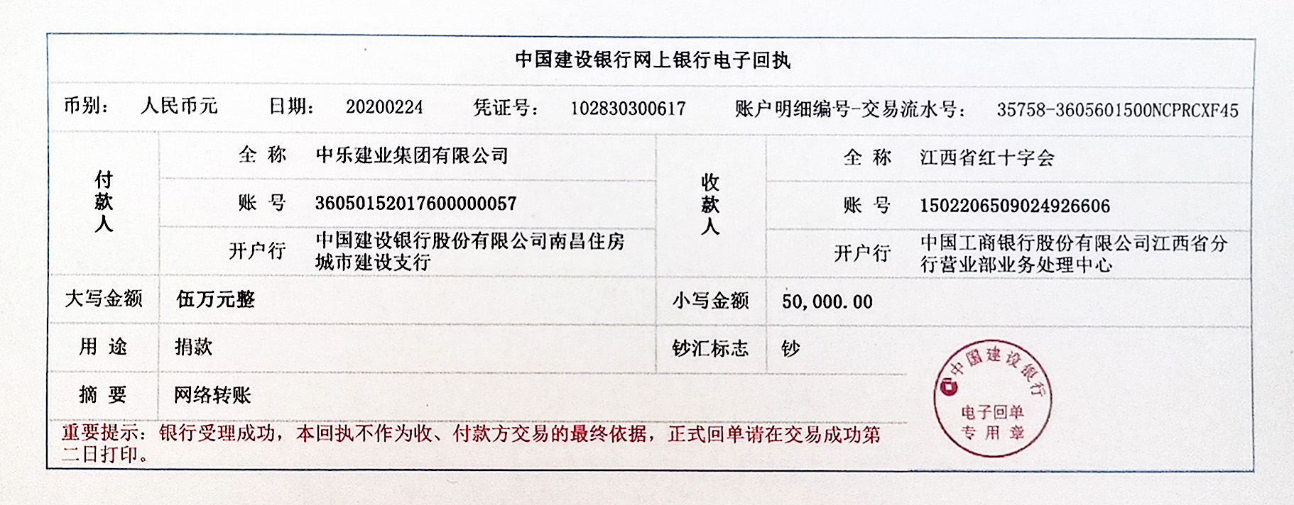 疫情當(dāng)前,正是守望相助的時(shí)刻。2020年2月23日中樂建業(yè)集團(tuán)有限公司向省紅十字會(huì)捐贈(zèng)特制防護(hù)服120件,價(jià)值2萬元。次日再捐款5萬元。用于抗擊疫情,將溫暖直送最需要的地方。用實(shí)際行動(dòng)表達(dá)企業(yè)與政府共同抗擊疫情的決心,為打贏這場無硝煙的疫情防控戰(zhàn)貢獻(xiàn)了自己的一份綿薄之力。
